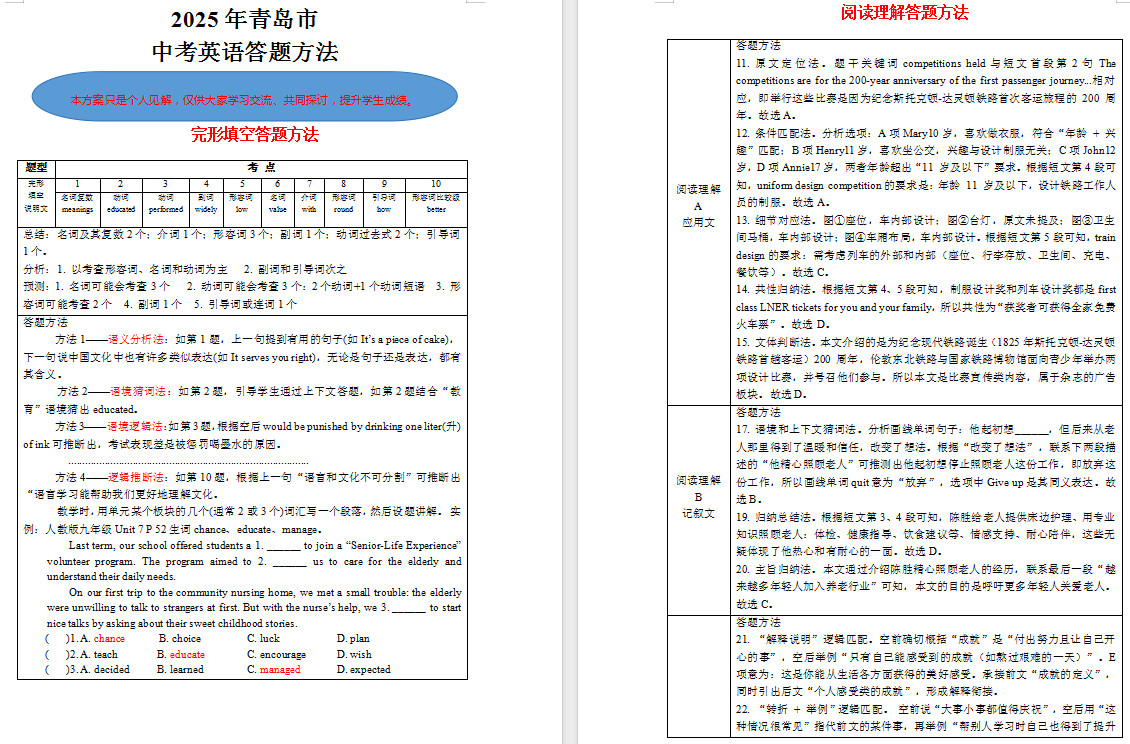 前几天,一家青岛市英语培训机构找我写一份答题方法,个人认为青岛市中考英语考查全面、灵活、范围广。